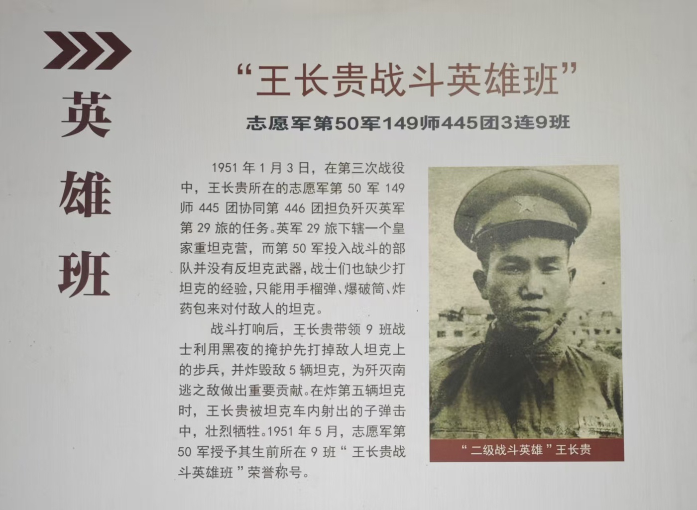 抗美援朝纪念馆中对王长贵烈士的介绍