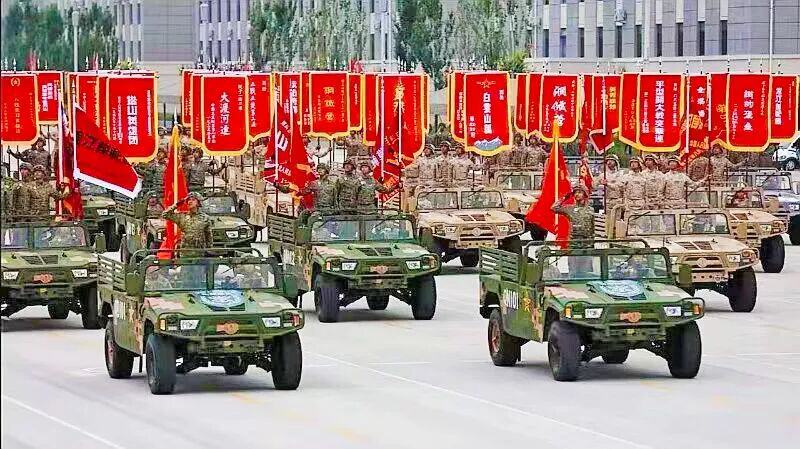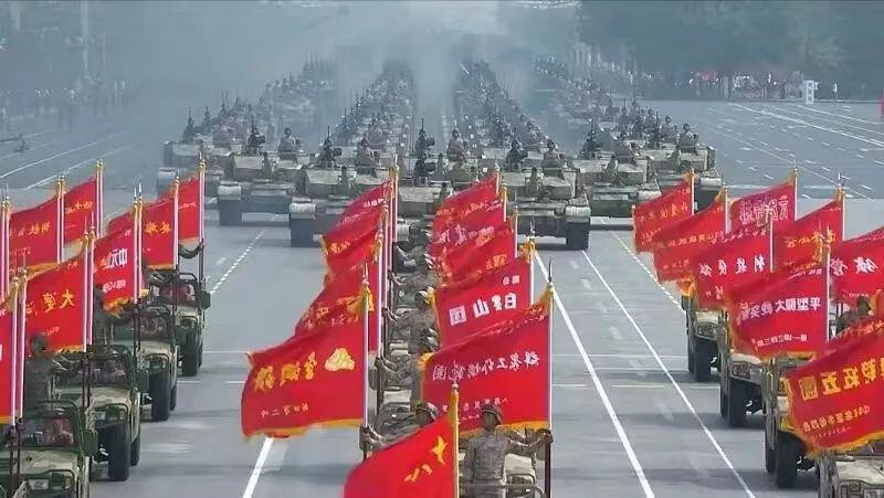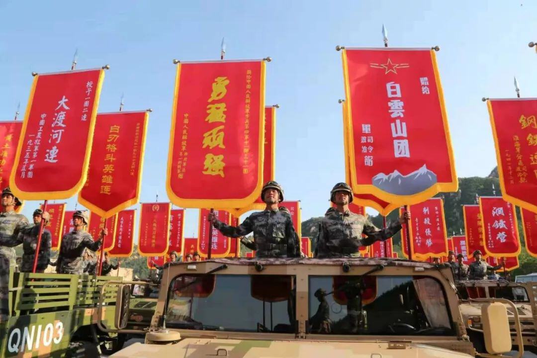 “白云山团”旗在百面战旗方阵中迎风飘扬、昂首向前