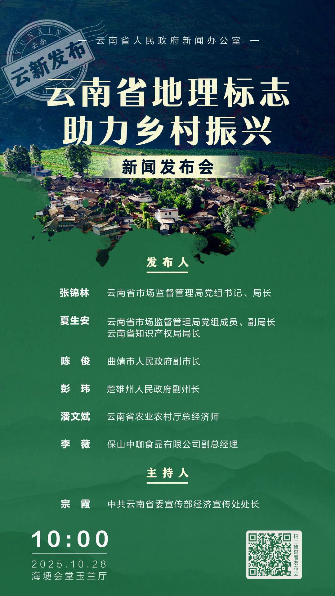 10月28日上午,云南省人民政府新闻办公室在云南海埂会堂举行云南省地理标志助力乡村振兴新闻发布会,介绍有关工作情况并回答记者提问。