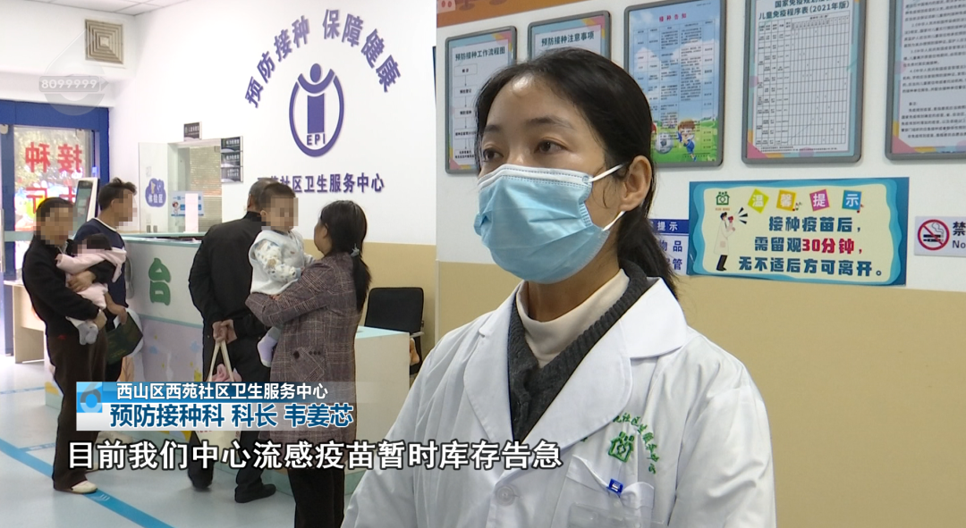 西山区西苑社区卫生服务中心 预防接种科 科长 韦姜芯:“目前我们中心流感疫苗暂时库存告急,我们也在进一步沟通,本周内应该会到位。”