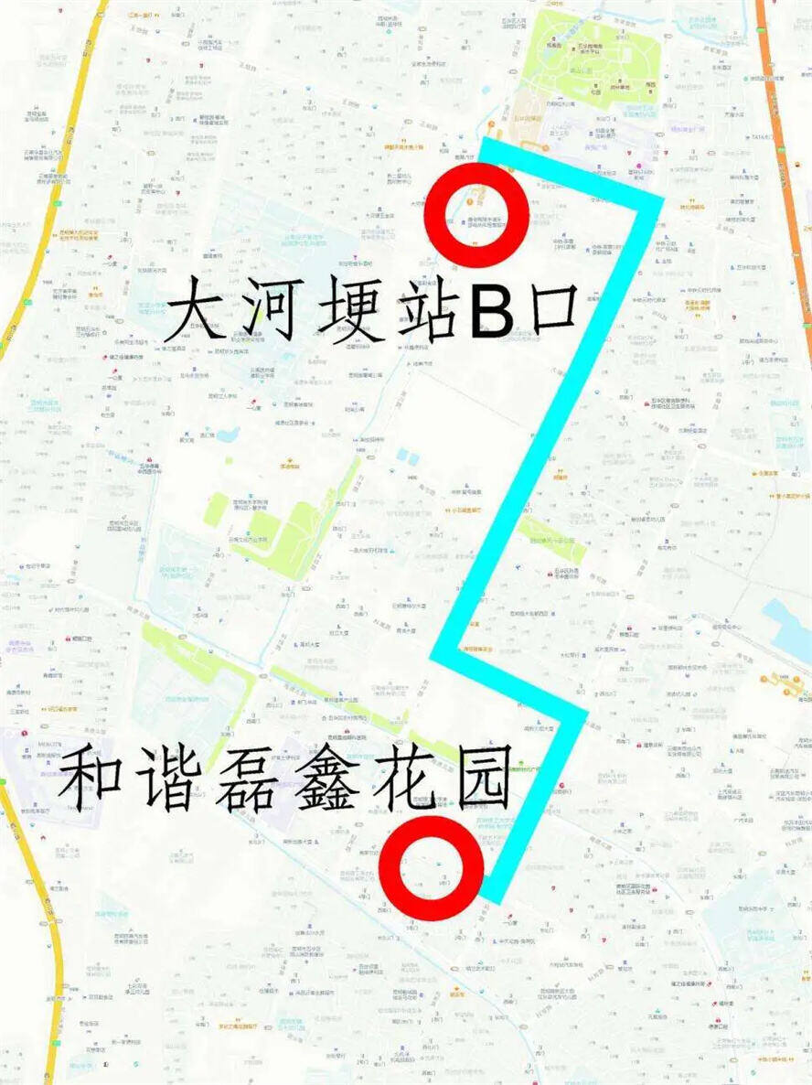 起终点:和谐磊鑫花园(起始站)——大河埂站B口(终到站)。