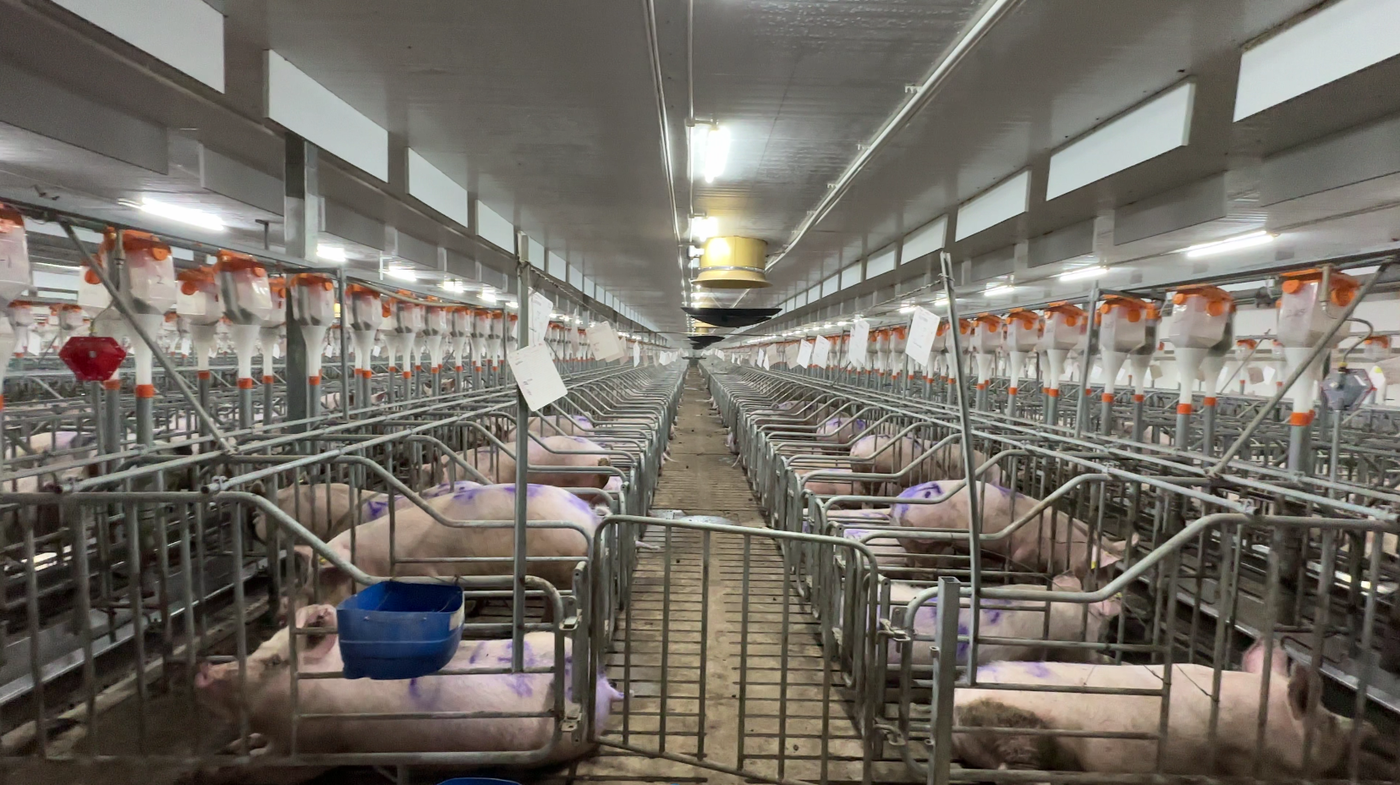 2017年7月至2024年10月期间,菱角种猪场投入超1.15亿元升级自动化设备:自动环控系统能实时监测猪舍温度、精准调控通风,自动刮粪系统实现高效清理与资源化利用,自动送料系统能精准输送饲料,员工轻点APP就能调节投喂量,“瘦的多喂两把,胖的少给点,确保个个体况均匀。”严于勋边演示边说。