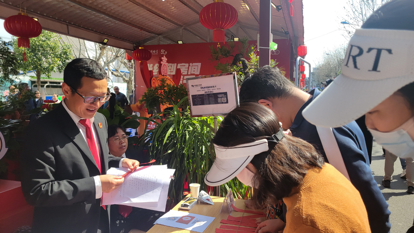 迎春花街上为何会开展普法活动?又为何会挤满人?除了发传单、搞讲座,普法还能玩出什么“新花样”?