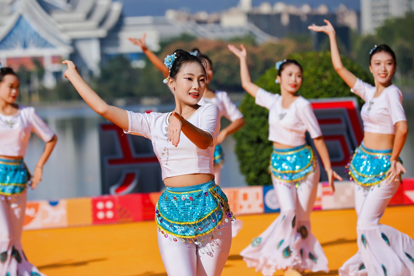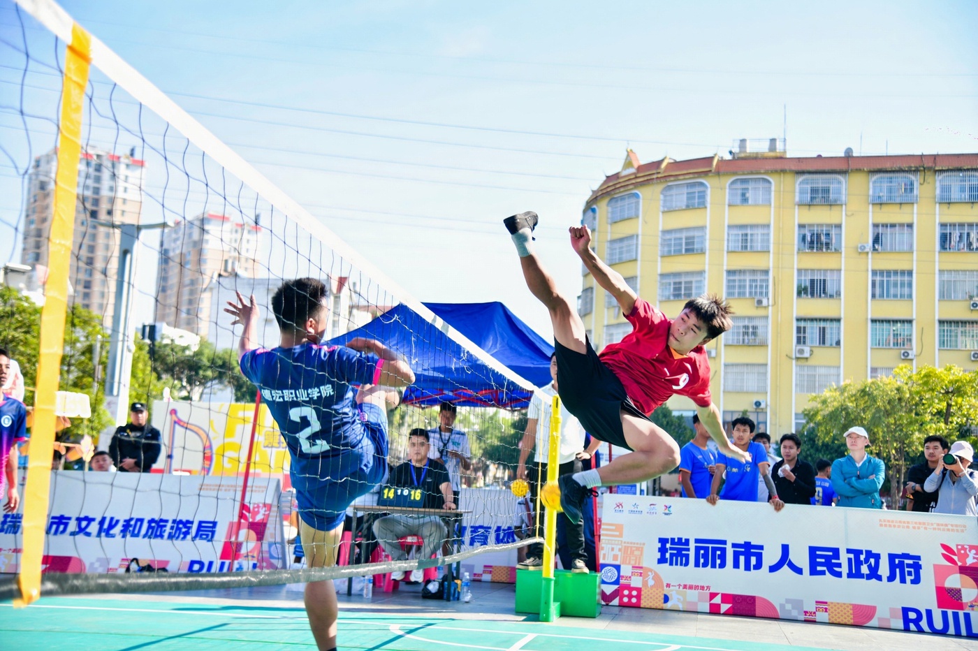 本次邀请赛巧妙融合竞技性、民族性与趣味性,设置了民族健身操、藤球等竞赛项目,以及傣族武术、篾弹弓、景颇族扭棍等6项民族传统体育趣味体验游戏。赛场上,运动员们挥洒汗水,切磋技艺;体验区里,市民游客踊跃参与,笑声不断。一场场激烈角逐,一次次默契配合,生动诠释了“各美其美,美美与共”的民族团结图景。