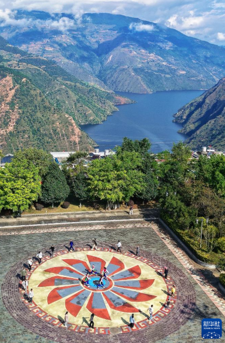 10月31日,小湾东镇居民在澜沧江畔的移民广场休闲(无人机照片)。