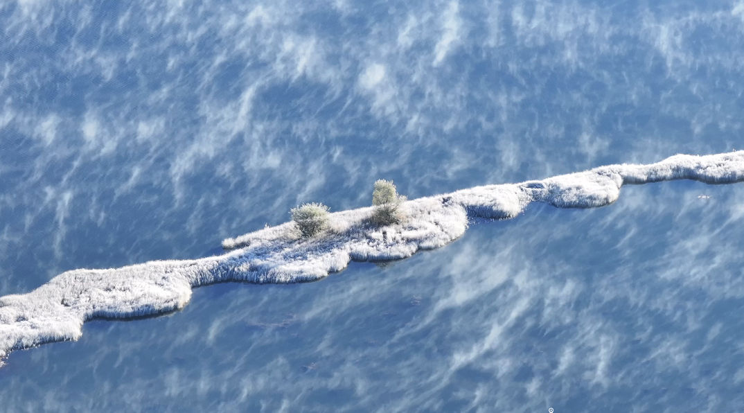 当迪庆属都湖铺就银白地毯,红黄秋林在湖面投下斑斓倒影;