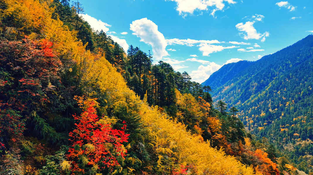 当怒江塞瓦龙巴牧场被墨绿、金黄、绯红层层晕染,阳光穿透枝叶洒下满地碎金;