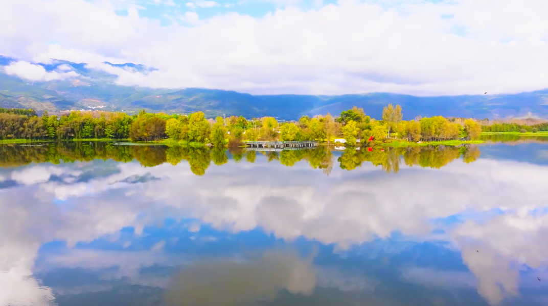 当大理茈碧湖化作巨型镜面,将蓝天流云完美复刻,水天相接处难辨虚实……