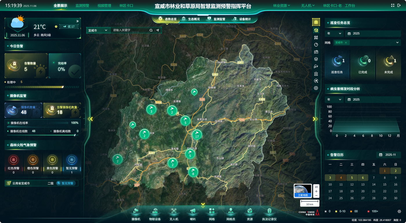 10月29日,“乡村‘智慧’路云南行”第二季全媒体行来到曲靖宣威市。透过宣威市林业草原局智慧监测预警指挥平台(以下简称“智慧监测预警指挥平台”)的大屏幕,我们感受到,护林员的日常工作和有关部门应对火情的处置流程正发生改变……
