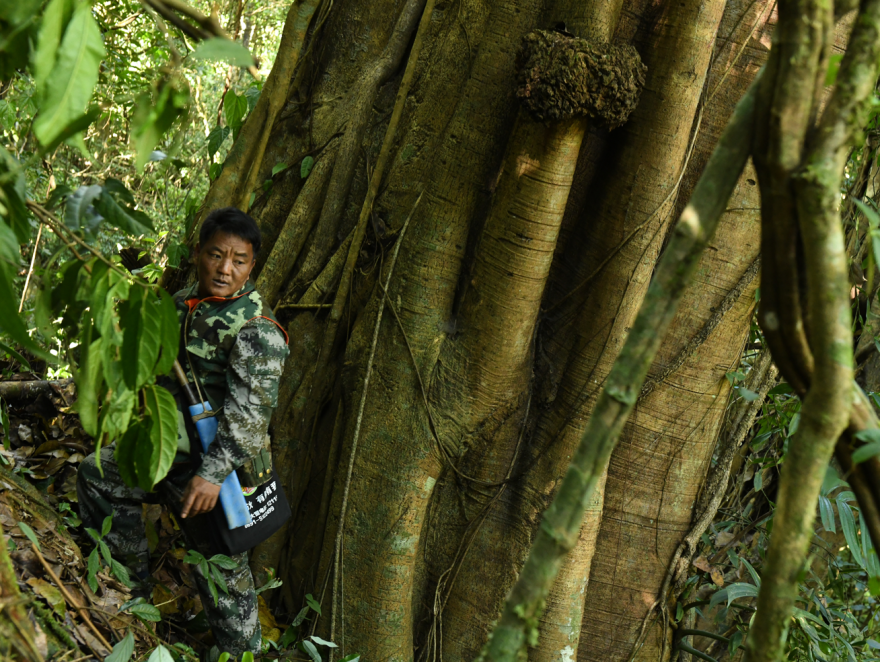 腊疯在林间巡护。图源:“森林云南”微信公众号