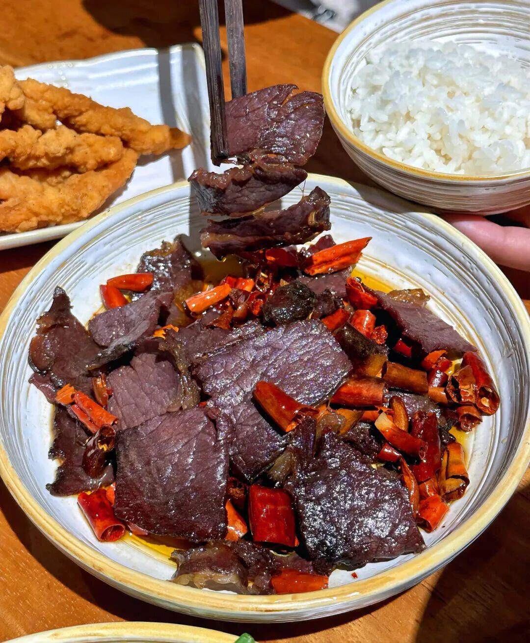 穿过“喜庆用品一条街”,便来到了最受当地人欢迎的家常小炒区。“云味四季”“新味源清真饭馆”“君品乐羊街羊肉馆”……各色招牌林立,每一家都是不少人的心头好。大火快炒,快速出餐,物美价廉,好吃到让人连下几碗饭,满意而归。