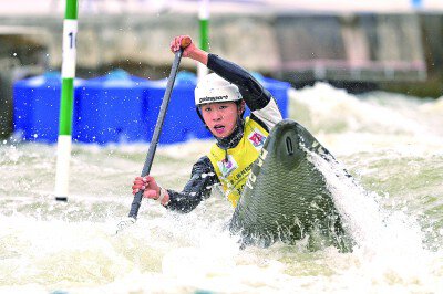 11月12日,十五运会皮划艇激流回旋项目迎来第一个比赛日。图为选手在比赛中。光明日报记者 陈城摄/光明图片
