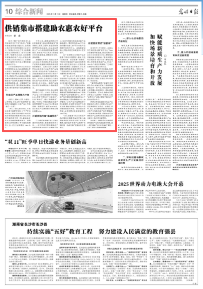 新征程上,供销合作社系统将持续织密农产品现代流通服务网络,进一步打通农产品出村进城的“最后一公里”,谱写为农服务新篇章。