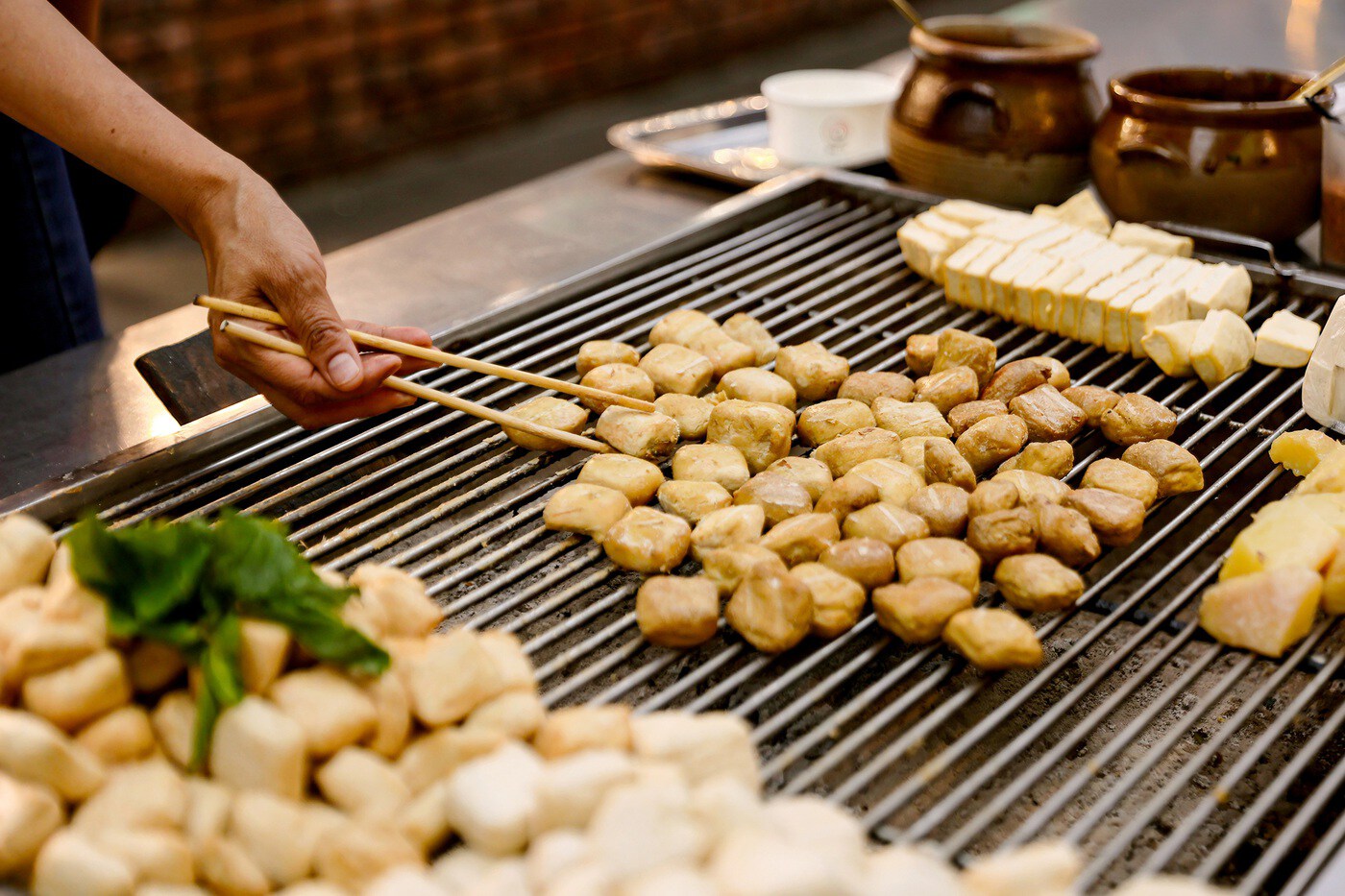店主正在翻烤建水豆腐。记者 胡妤雅 摄