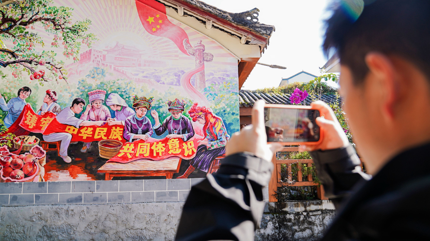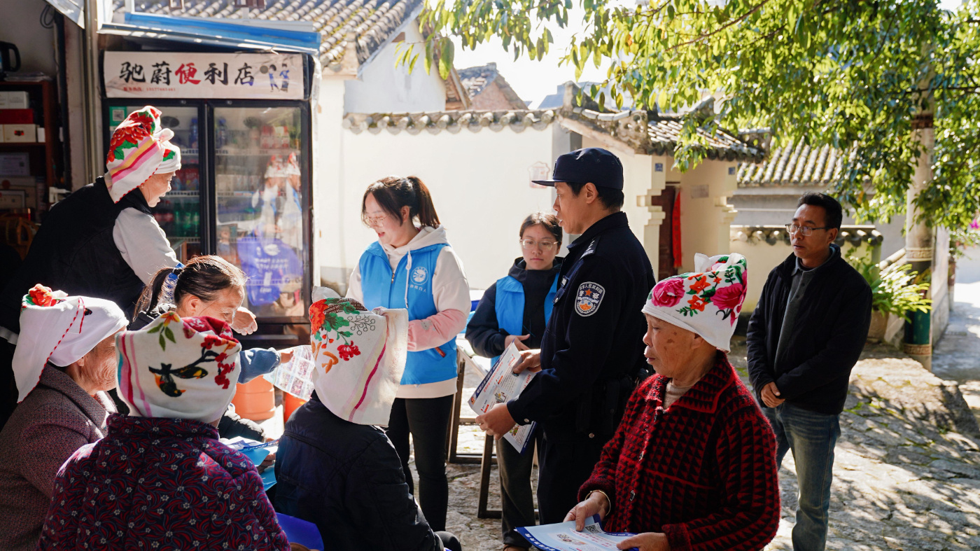 在村口的宣传栏上有一副赫然醒目的二维码,拿出手机轻轻一扫,大革假村的法治宣传随即弹出手机页面。自2023年起,大革假村开展“码上普法”工程,二维码成为村民获取法律知识的新入口。轻扫一下,常用的法律法规与法治文艺小节目等内容跃然掌上。“我们还建立了微信群,确保在外务工的村民也能同步接收,实现普法不落一人。”广南县莲城镇小广南社区副主任陆宗圭介绍道。