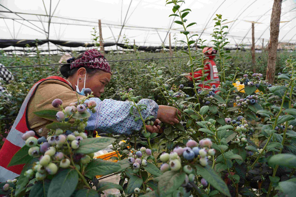2020年以来,云南蓝莓产业从10多年前的零星种植一跃而起,成为全球蓝莓种植户版图上的强劲新势力。数据显示,2024年末,云南蓝莓栽培面积达24.9万亩,占全国面积的17%,产量17.1万吨,占全国产量的22%,栽培面积和产量均居全国首位。当年,云南蓝莓年产值突破170亿元,带动就业人数超过20万人。
