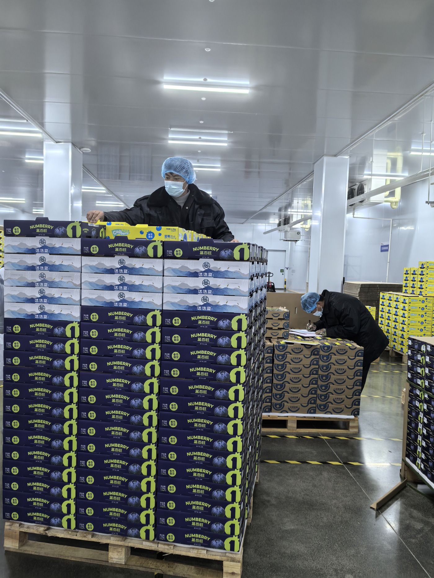 新摘的蓝莓贴上可追溯采摘者姓名的二维码,就近运输至光筑集团投资兴建的亚洲最大单体蓝莓初加工厂,经过两次预冷后,再贴上加工厂二维码,最快36小时就能冷链运抵沿海等市场。