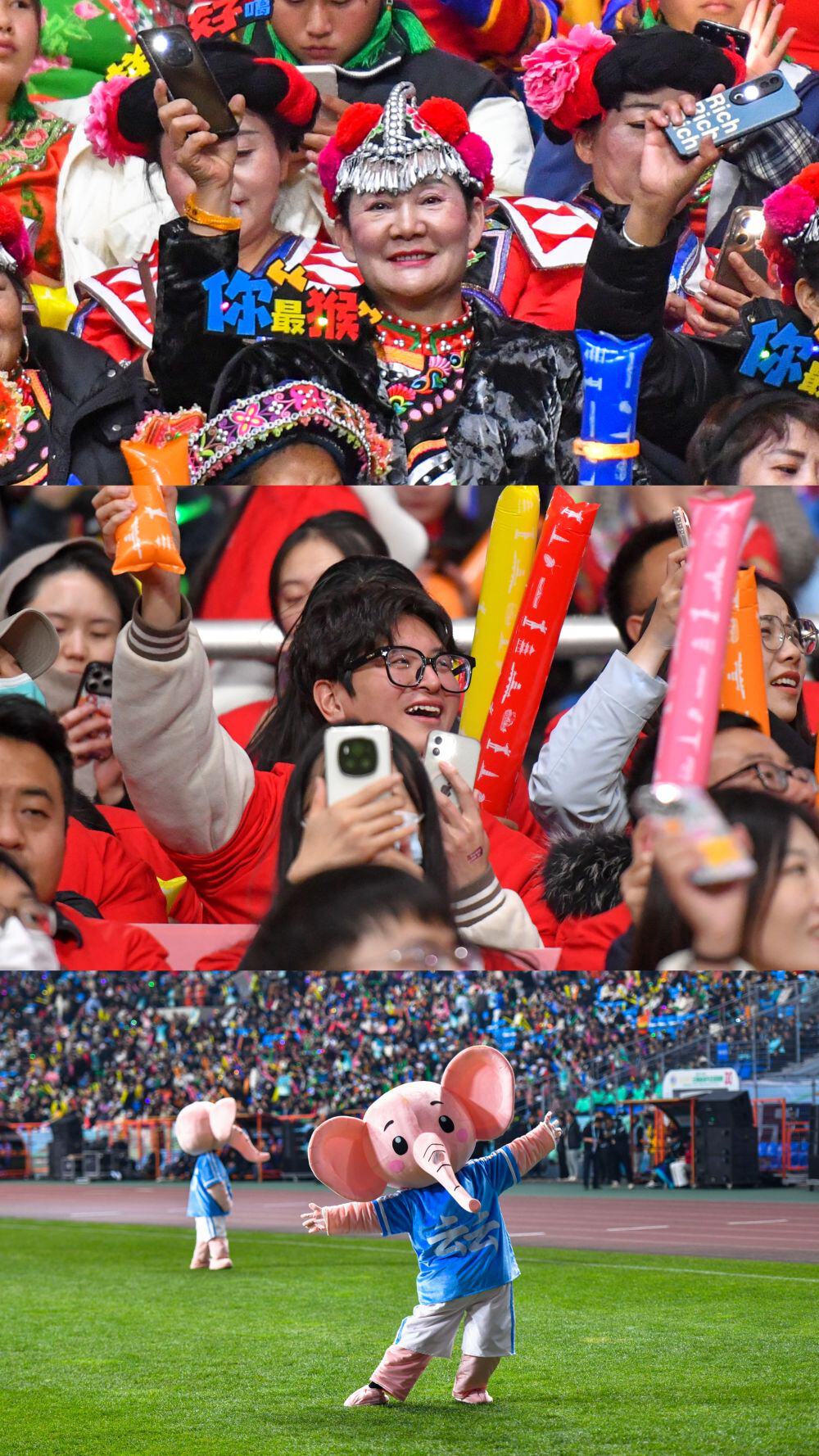↑11月29日,观众在中场休息时进行拉歌大赛。
