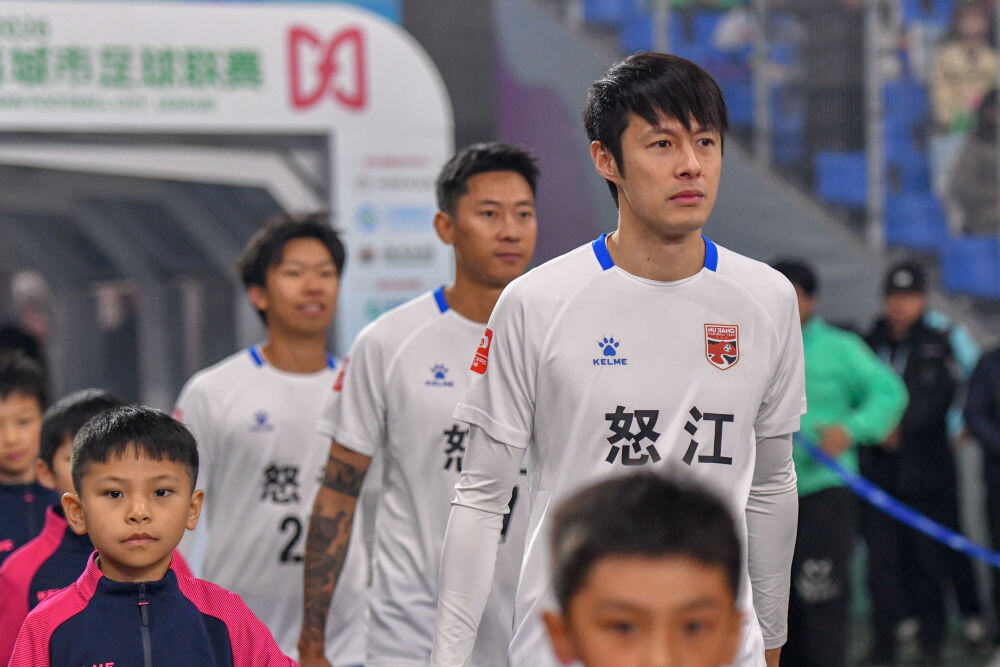 ↑11月29日,西双版纳队队员身着长款羽绒服进场。
