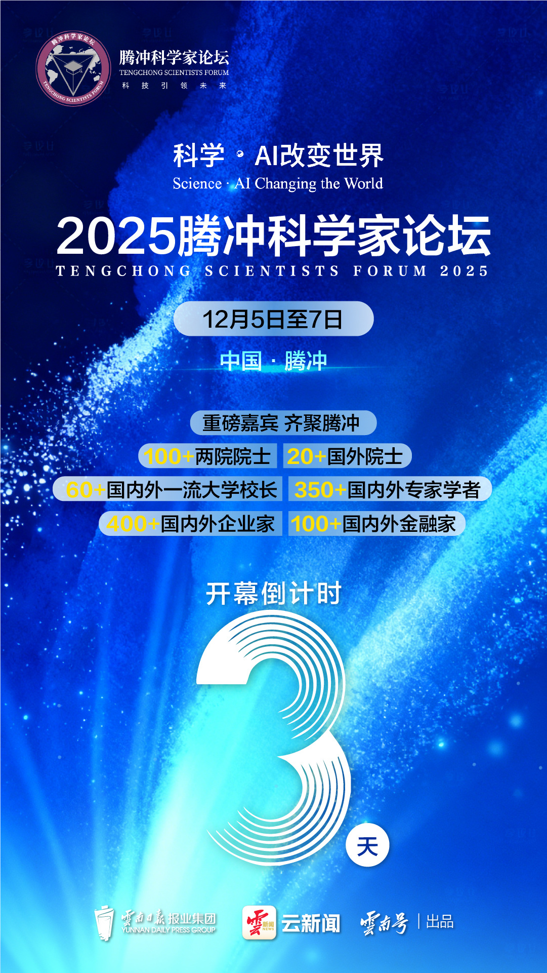 原标题:2025腾冲科学家论坛丨倒计时,3天!首设“腾冲青年科学家奖”→