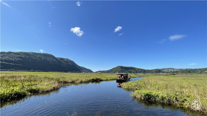 春夏时节,紫色的鸢尾花铺满整个湖面,与蓝天白云倒影相接;秋冬季节,被寒风染黄的金色草排,犹如厚厚的“浮毯”,成群的候鸟——河燕鸥、紫水鸡、青头潜鸭在此栖息觅食。乘坐当地渔夫的木船滑入湿地深处,船桨拨开水面上荡出层层波浪,仿佛划行在一幅流动的油画中。
