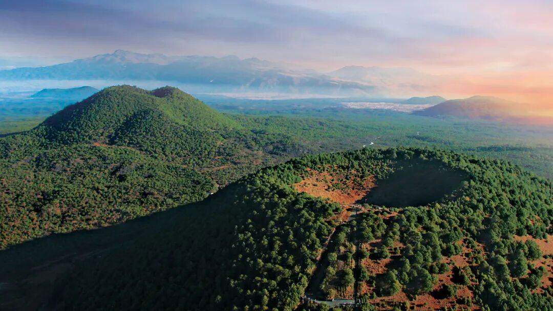 若要领略其全貌,不妨乘上热气球缓缓升空。在晨曦薄雾中,俯瞰座座火山如大地印章般嵌在绿野之上。登上大空山火山口则是另一番震撼,亲眼见证"休眠火山"的姿态。沿步道至火山口边缘,深达50米的巨型“火山碗”豁然在眼前,如今早已被绿意温柔覆盖,唯有脚下遍布的黑色火山石,仍诉说着大地深处曾有的炽烈与力量。