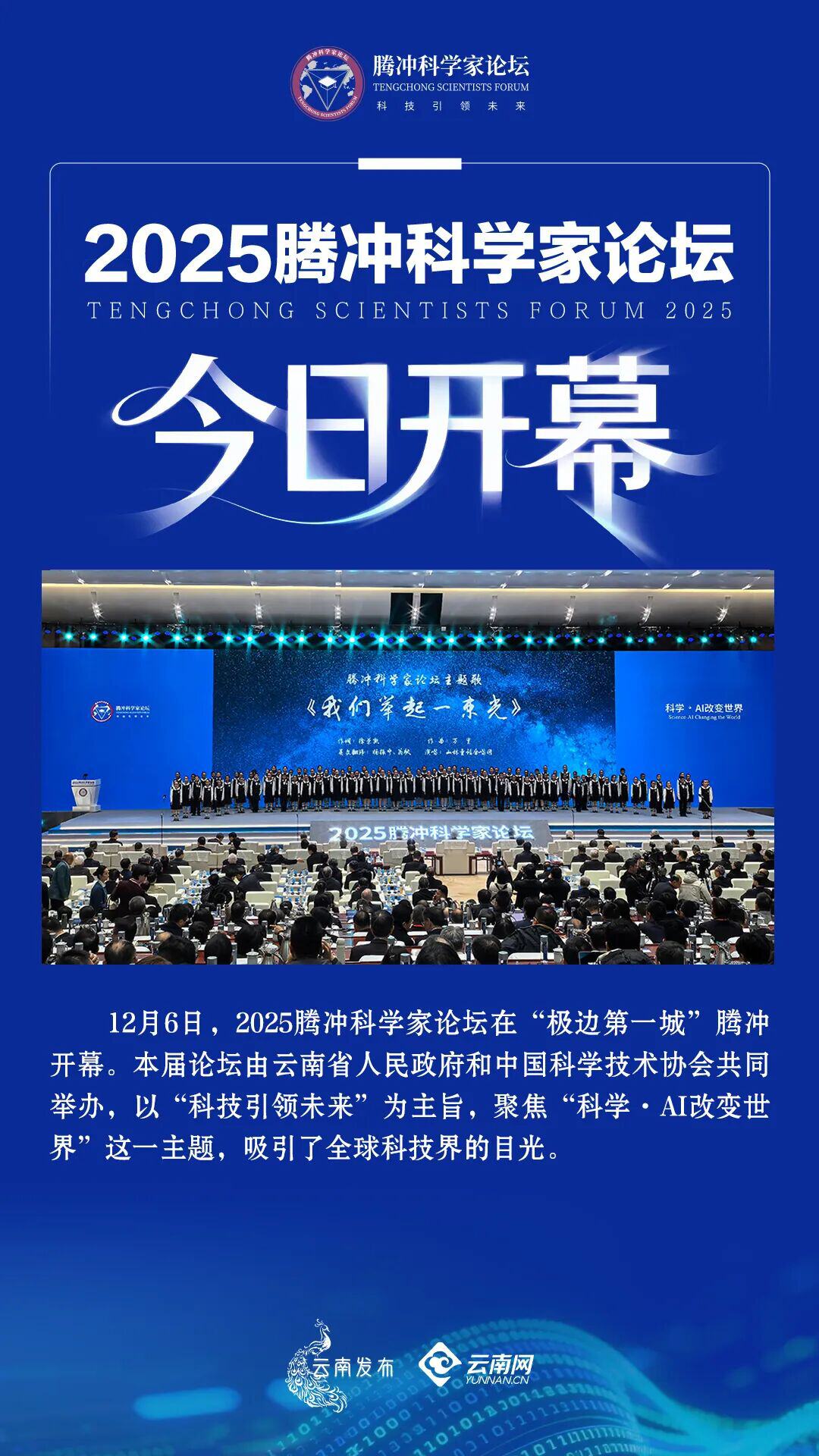 12月6日,2025腾冲科学家论坛在“极边第一城”腾冲开幕。本届论坛由云南省人民政府和中国科学技术协会共同举办,以“科技引领未来”为主旨,聚焦“科学·AI改变世界”这一主题,吸引了全球科技界的目光。