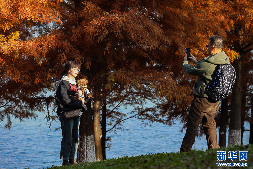 游客在昆明白龙潭公园拍照打卡(12月7日摄)。新华网发(郑益 摄)