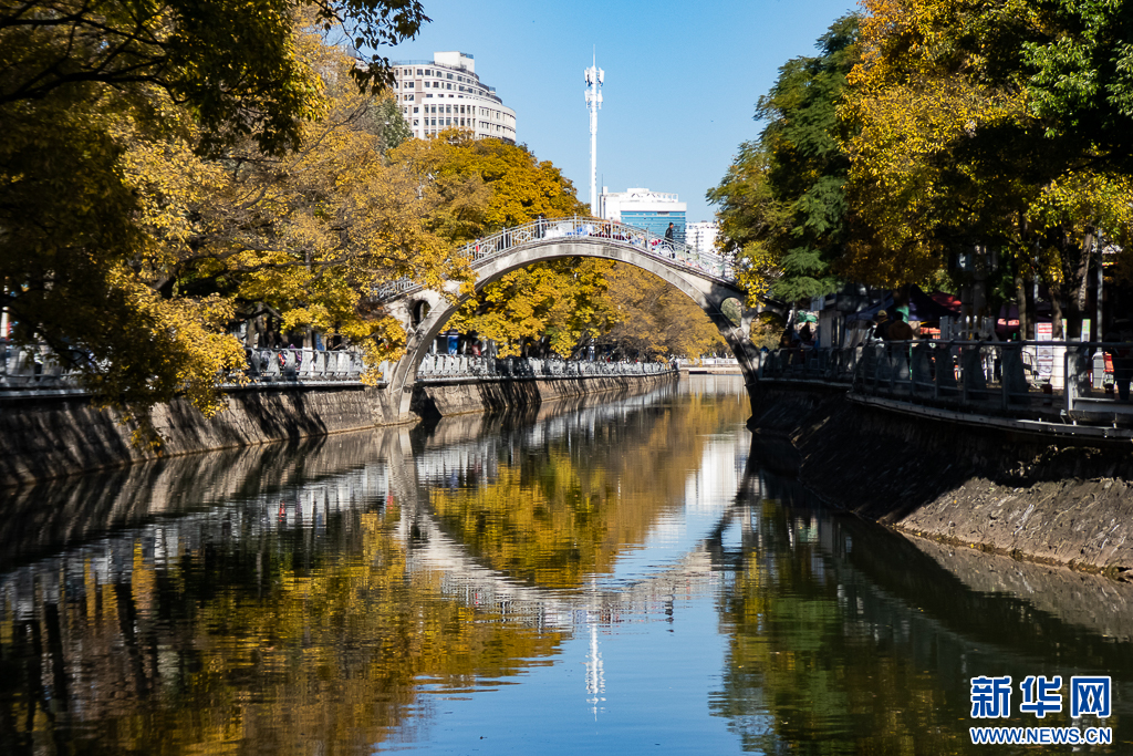 昆明大观河畔滇朴渐黄。(12月6日摄)。新华网发(郑益 摄)