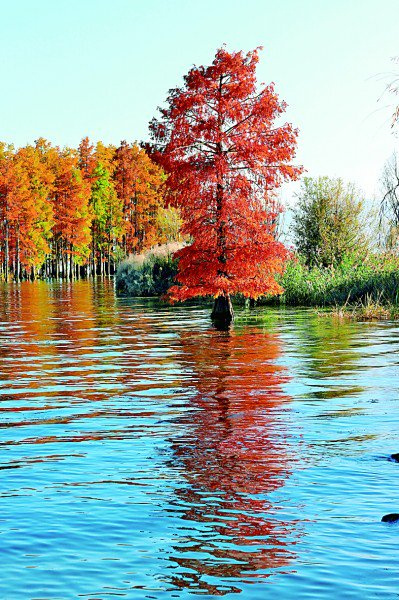 在保护区洱海生态廊道龙龛码头,水杉扎根湖中。白洁摄/光明图片