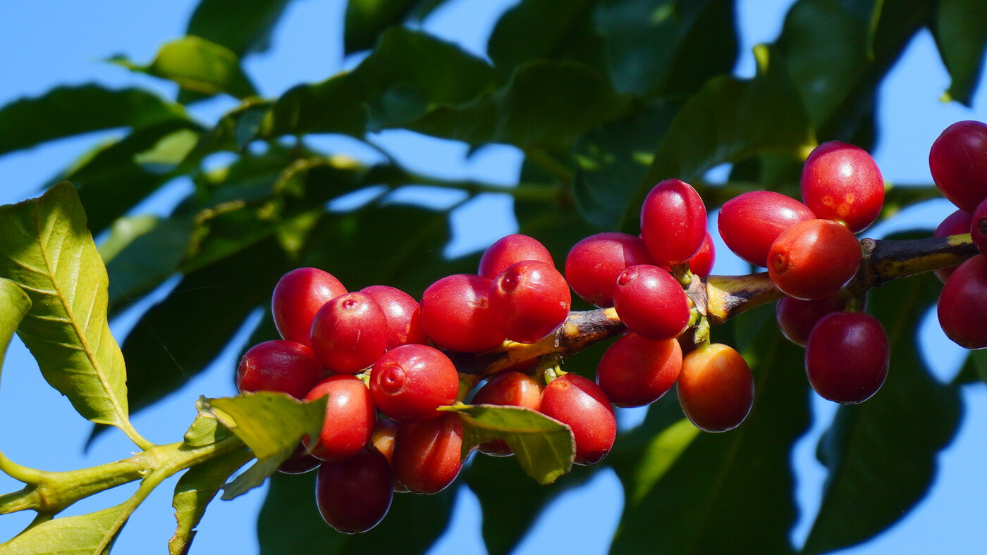 火红的咖啡鲜果。 李建国 杨艳鹏 摄