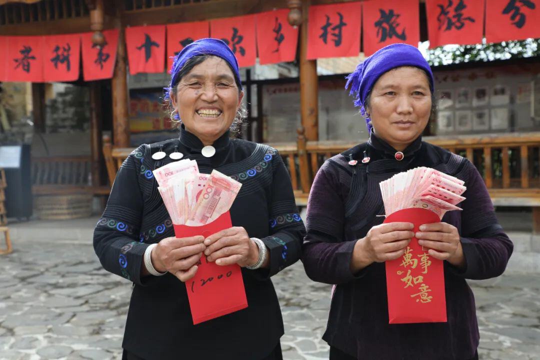 红河州元阳县新街镇阿者科村,领到分红的村民喜笑颜开。陈萍 摄