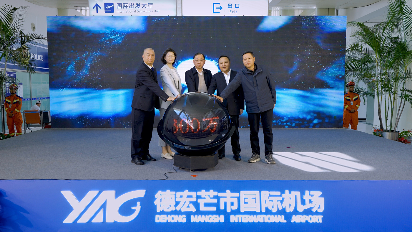 12月23日,随着第300万名幸运旅客名单揭晓,德宏芒市国际机场(以下简称“芒市机场”)迎来历史性时刻:年旅客吞吐量首次突破300万人次大关。这是继2019年跻身200万人次级机场行列后,德宏民航事业发展取得的又一重大突破,标志着芒市机场通航35年来实现跨越式发展,正式迈出由支线机场向次区域枢纽机场转型的坚实步伐。