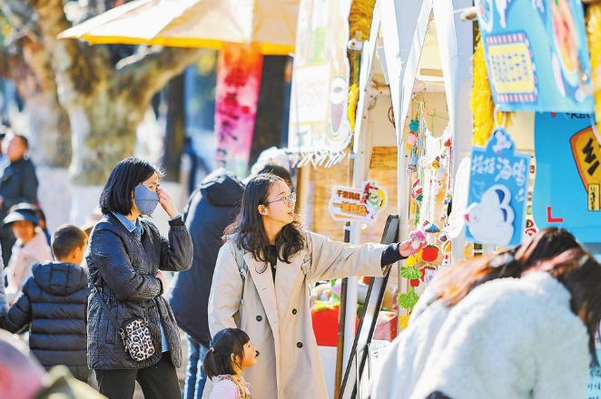 图为市集上文创产品备受青睐。记者 胡妤雅 摄