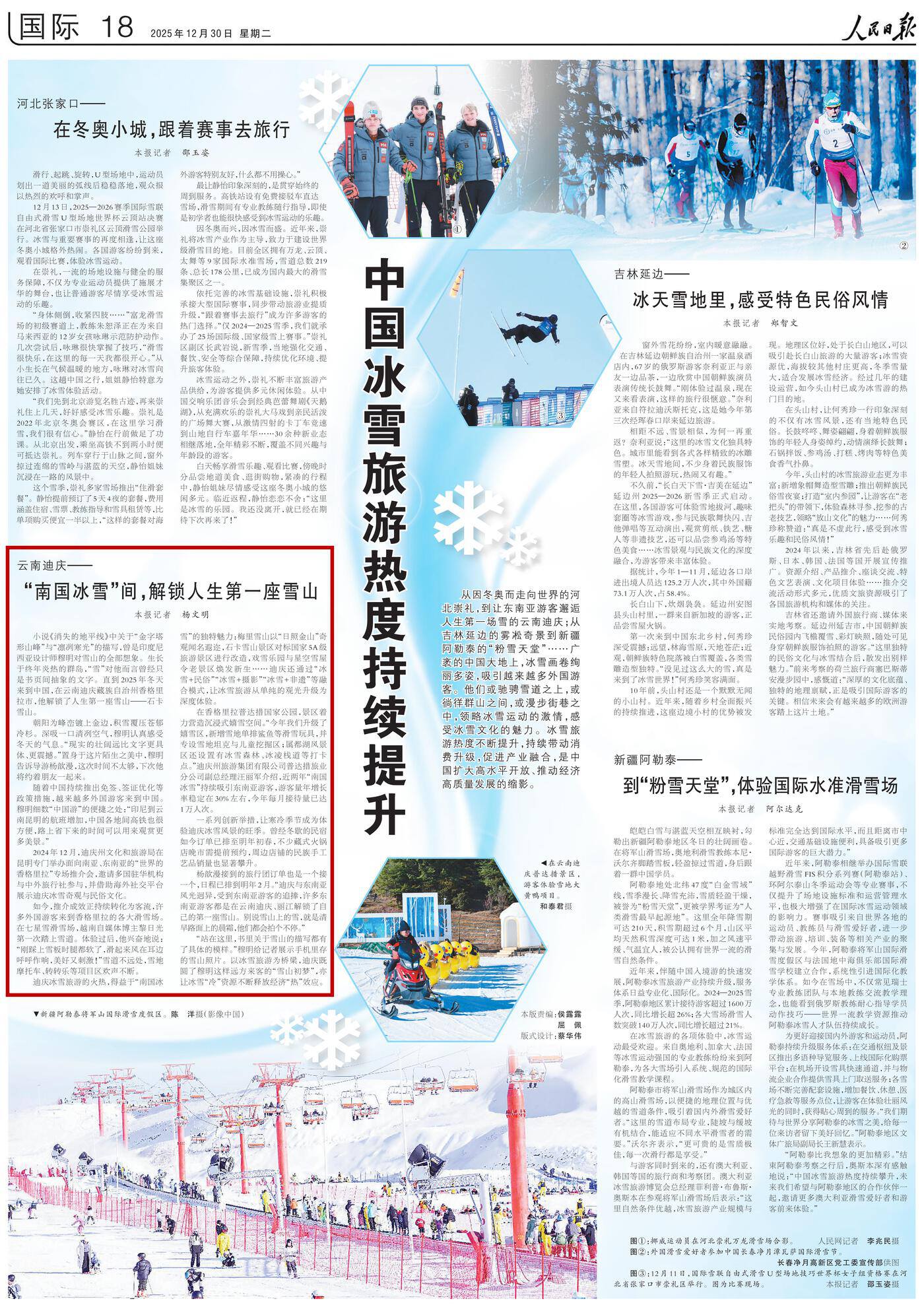“站在这里,书里关于雪山的描写都有了具体的模样。”穆明给记者展示手机里存的雪山照片。以冰雪旅游为桥梁,迪庆既圆了穆明这样远方来客的“雪山初梦”,亦让冰雪“冷”资源不断释放经济“热”效应。