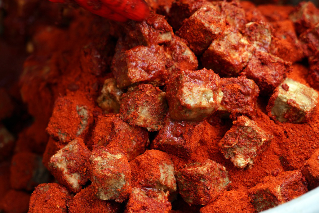 大田坝腌豆腐的精髓,在于“自然”与“耐心”。这项恪守百年的古老技艺不依赖现代催熟手段,全凭微生物在坛中默默作用。经过数月甚至更久的封藏,香料的醇厚与豆腐的本味深度交融,最终形成咸、鲜、香、辣层次分明,口感绵密中带着微妙颗粒感的独特风味。