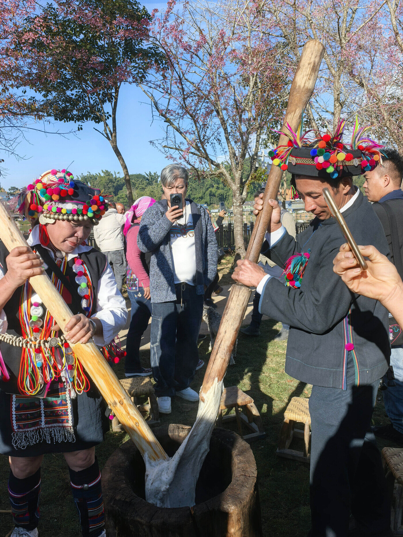 各民族群众和省内外游客齐聚风景如画的黑龙潭畔,欢度佳节。