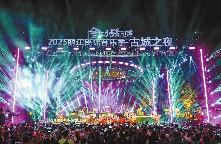 11月14日晚,丽江古城玉河广场灯火璀璨,“2025丽江民谣音乐季·古城之夜”活动在此举行。来自上海、杭州、昆明等地的歌手与丽江本土音乐人同台献艺,以民谣为纽带串联“诗与远方”。