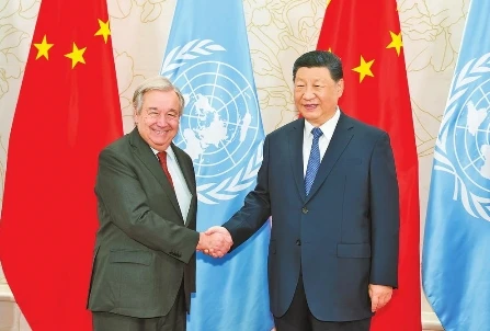 8月30日下午,国家主席习近平在天津迎宾馆会见来华出席2025年上海合作组织峰会的联合国秘书长古特雷斯。