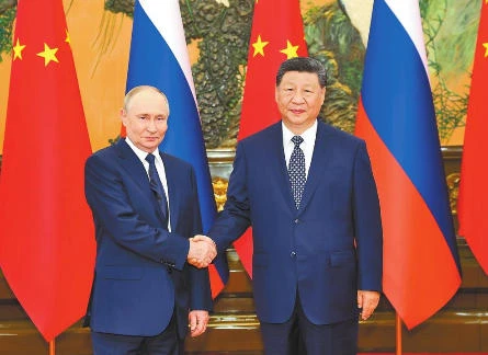 习近平指出,中俄两国元首相互出席对方国家举办的纪念世界反法西斯战争胜利庆典,充分彰显了作为第二次世界大战主要战胜国和联合国安理会常任理事国的大国担当,展示了维护二战胜利成果、捍卫正确二战史观的坚定决心。我提出全球治理倡议,就是要会同所有志同道合国家,坚定捍卫联合国宪章宗旨和原则,推动建设更加公正合理的全球治理体系。中俄两国都强调主权平等、国际法治、多边主义,要继续在联合国、上海合作组织、金砖国家、二十国集团等多边平台加强协作,携手推动构建人类命运共同体。