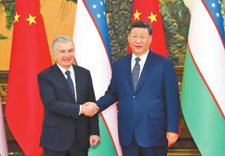 9月2日上午,国家主席习近平在北京人民大会堂会见来华出席2025年上海合作组织峰会和纪念中国人民抗日战争暨世界反法西斯战争胜利80周年活动的乌兹别克斯坦总统米尔济约耶夫。