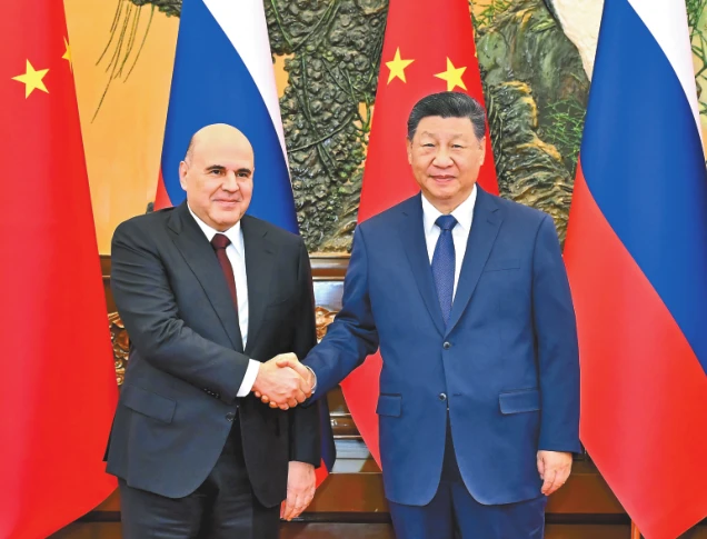 米舒斯京转达普京总统对习近平主席的亲切问候和良好祝愿。米舒斯京表示,祝贺中共二十届四中全会成功举行,相信中国一定会顺利实现“十五五”规划建议确定的目标,取得更大经济社会发展成就。两国元首今年两次会晤,对俄中关系发展作出战略规划,巩固了俄中全面战略协作伙伴关系。俄方愿同中方一道,落实两国元首达成的重要共识,深化经贸、科技、能源、农业、数字经济等领域合作,密切人文交流,加强多边协调配合,推动两国合作取得更多成果。