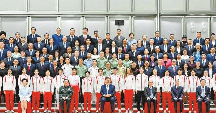11月9日下午,中共中央总书记、国家主席、中央军委主席习近平在广州亲切接见全国群众体育先进单位、先进个人代表和全国体育系统先进集体、先进个人代表,并同大家合影留念。 新华社记者 申宏 摄