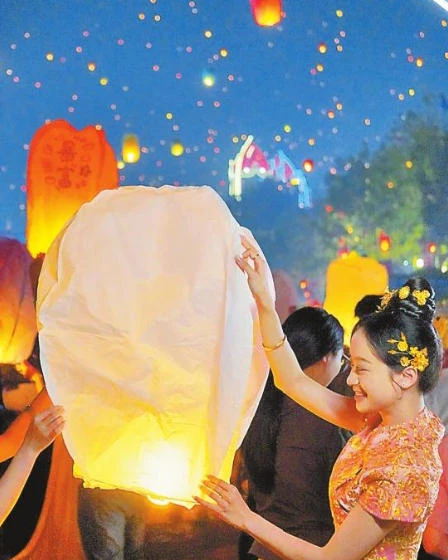 放飞孔明灯。