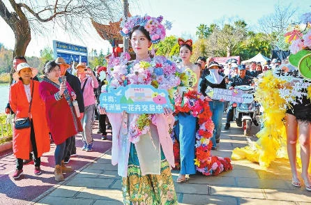呈贡区春节群众文化系列活动在洛龙公园举办。舞台上,传统与现代巧妙融合,非遗舞蹈《板凳龙韵传》以长凳为龙,舞出排山倒海的磅礴气势;现代舞蹈《春节序曲》以熟悉的旋律点燃全场,将红火热闹的年味推向高潮。围绕本土文化及春节习俗的趣味问答吸引众多观众踊跃参与,加深了大家对家乡文化的了解与认同。在民俗巡游中,大头娃娃、划旱船等传统表演烘托出喜庆的氛围,“花仙子”演员们身着以鲜花元素设计的华美服饰,与“亚洲花都”的城市名片相呼应。掌声、欢呼声与巡游音乐交织,共同汇成喜庆祥和的“春潮”。活动期间还开设了可逛、可尝、可赏、可玩的非遗集市,市民游客可品尝臭豆腐、豌豆粉、米糕等传统小吃,选购瓦猫、菱角编织、滇派剪纸、甲马、刺绣、民间绘画等手工艺品,在浓浓的年味中欢庆佳节。