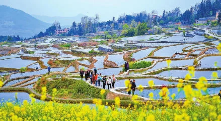 近日,元阳县哈尼梯田核心区的桃花、梨花、樱花、油菜花次第绽放。时下正是哈尼梯田春耕蓄水期,绽放的春花点亮了千年梯田,也带热了元阳乡村文旅。游客们在景点赏花拍照,走进农家品尝春菜,体验哈尼梯田春耕文化,感受春日的清新与生机。记者 黄翘楚 通讯员 张艳 李仙 摄