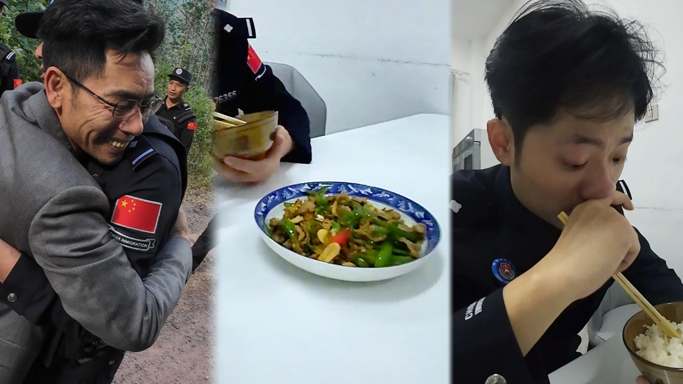 陪同孩子走完巡边路回到派出所,郭小安借用食堂锅灶,做了一道儿子“心心念念”的辣椒炒肉。一口热腾腾的米饭和着家乡味下肚,郭玉龙红了眼眶。告诉父亲自己下个月休假就回来家了。