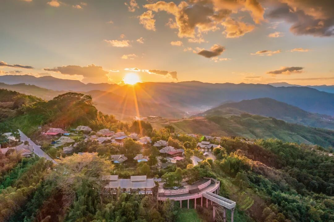 西盟县秧洛村,博航民族文化生态旅游特色村迎来日出。李毅 陈龙汝男 摄