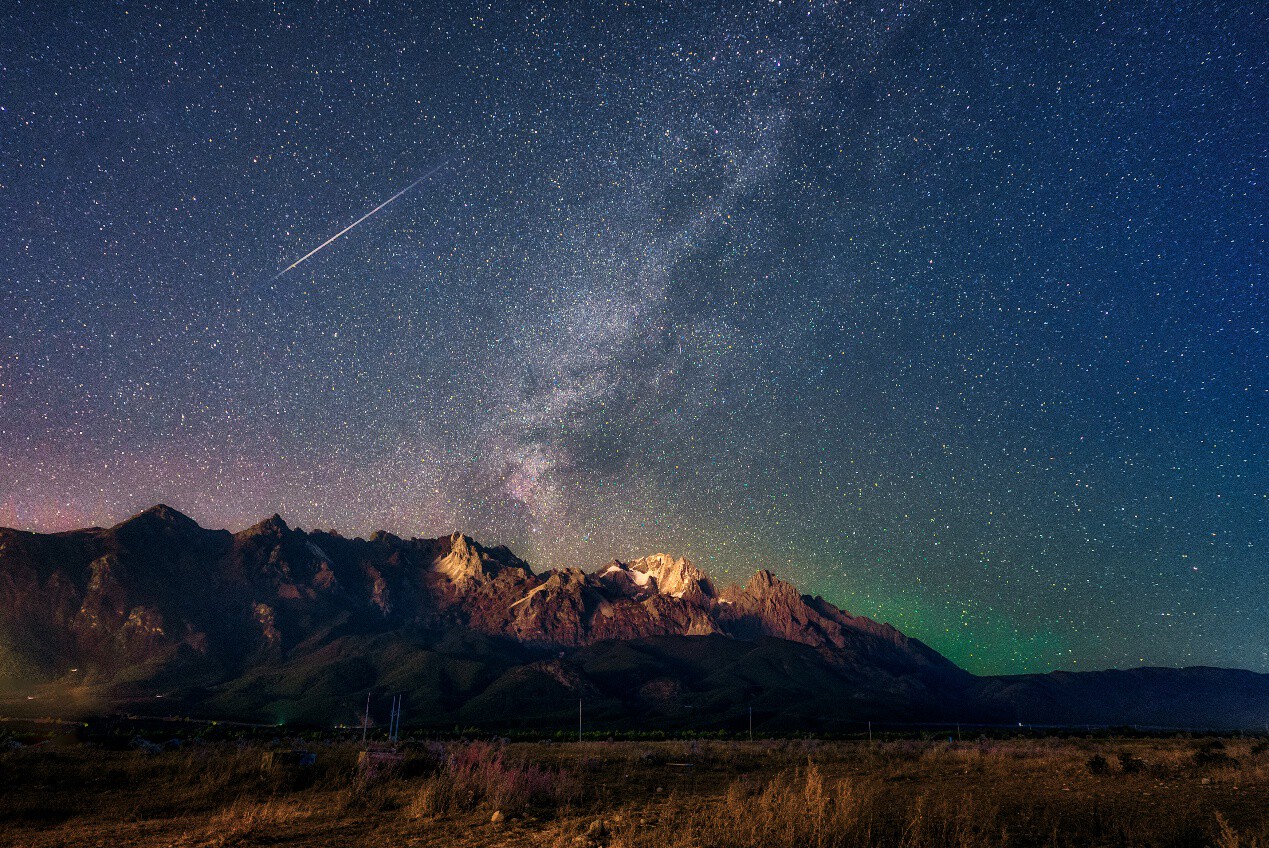 流星划过丽江玉龙雪山蓝月谷上空 卫楷文 摄