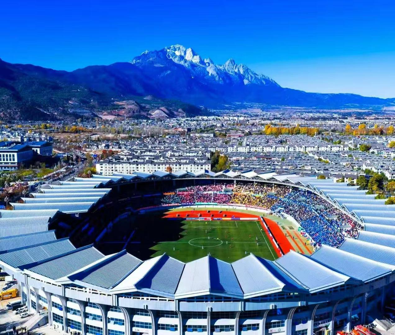 玉龙雪山脚下的丽江市体育发展中心体育场。